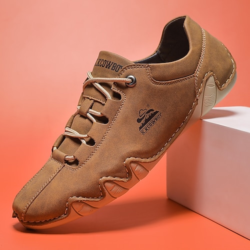 Sneakers casual da uomo in similpelle color cuoio, con lacci, comode scarpe da passeggio leggere, ideali per tutti i giorni, per viaggiare, guidare, per il fine settimana, per il tempo libero all'aperto e per uno stile casual elegante e rilassato.
