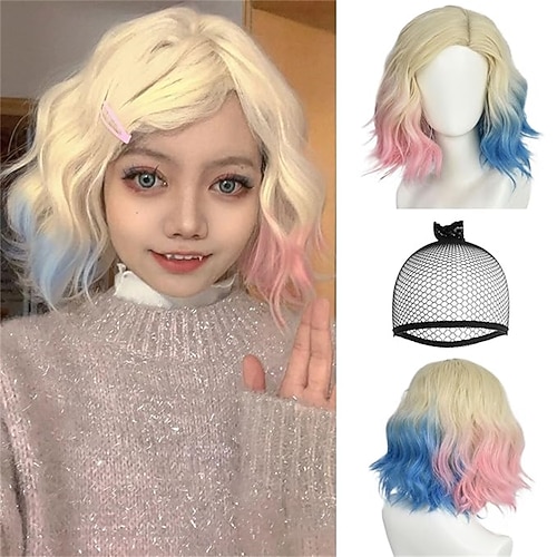 Parrucca di Carnevale Biondo Rosa Blu Riccio Corto Parrucca sintetica da festival Martedì grasso Parata Capelli per costumi da cosplay per Da donna