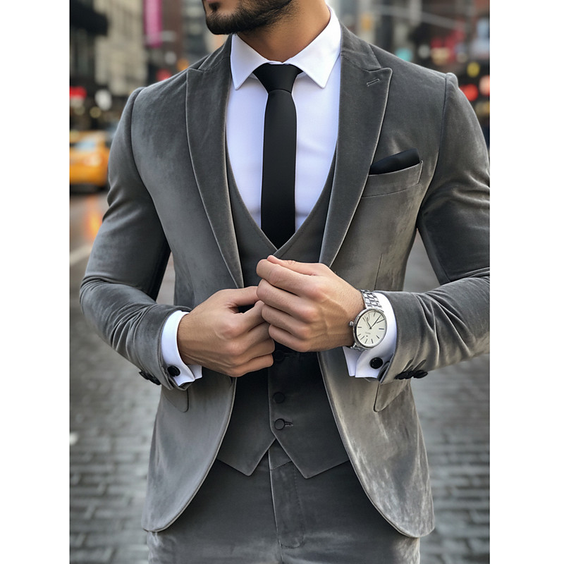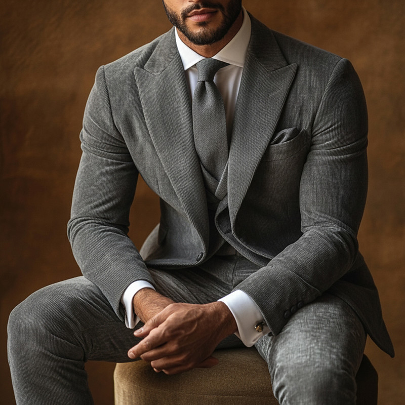 Men's Business Party Corduroy Suit Notch Lapel Black Burgundy Party Casual Striped Tailored Fit 3 Piece Single Breasted Three-buttons
