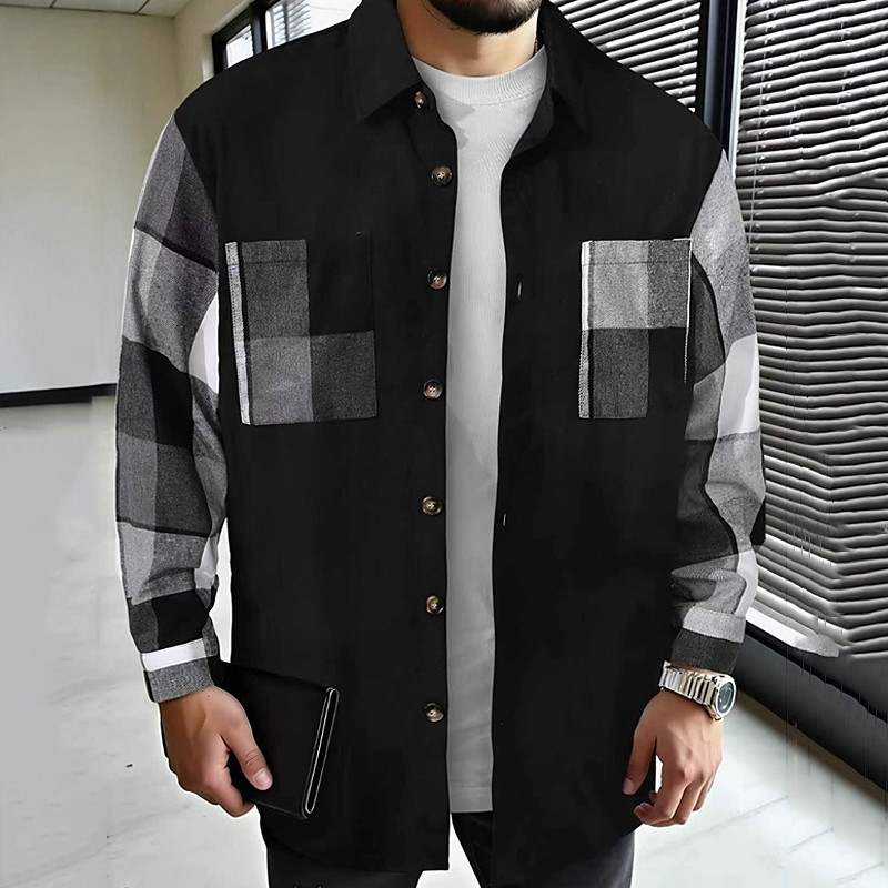Men's Shacket Shirt Jacket Winter Jacket Plaid Vacation Daily Wear Black Sky Blue Long Sleeve Lapel Fall Winter Clothing Apparel Front Pocket