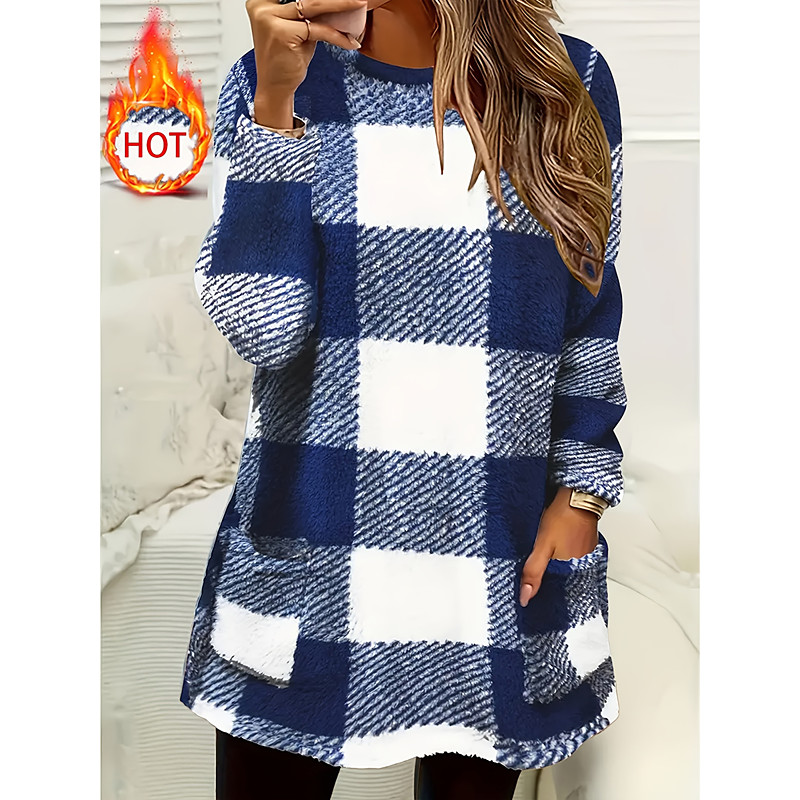 Women's Pullover Sweatshirt Plaid Cat Casual Sportswear Festival Round Neck Long Sleeve Top Micro-elastic Fall Winter