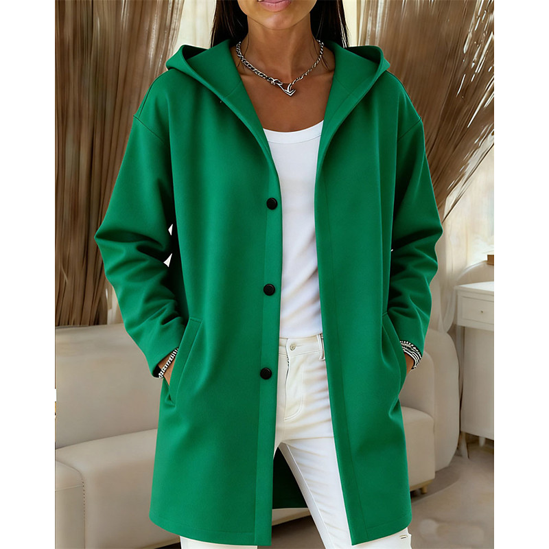 Women's Winter Coat Coat Windproof Warm Patchwork Pocket Buttons Elegant Fashion Cute Daily Solid Color Outdoor Home Work Casual Single Breasted Regular Hooded Regular Fit Long Sleeve Outerwear Blue