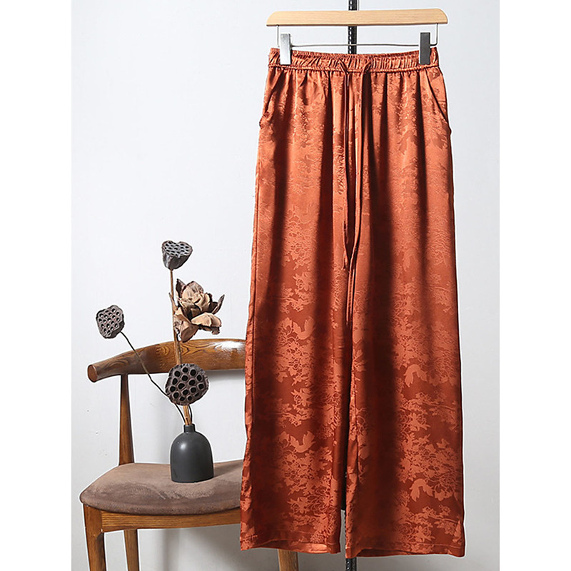 Women's Wide Leg Chinos Cropped Pants Elegant Vintage Fashion Full Length Medium Waist Solid Color Floral Graphic Patchwork Pocket Elastic Waistband Comfy Comfortable Breathable Inelastic Daily Home