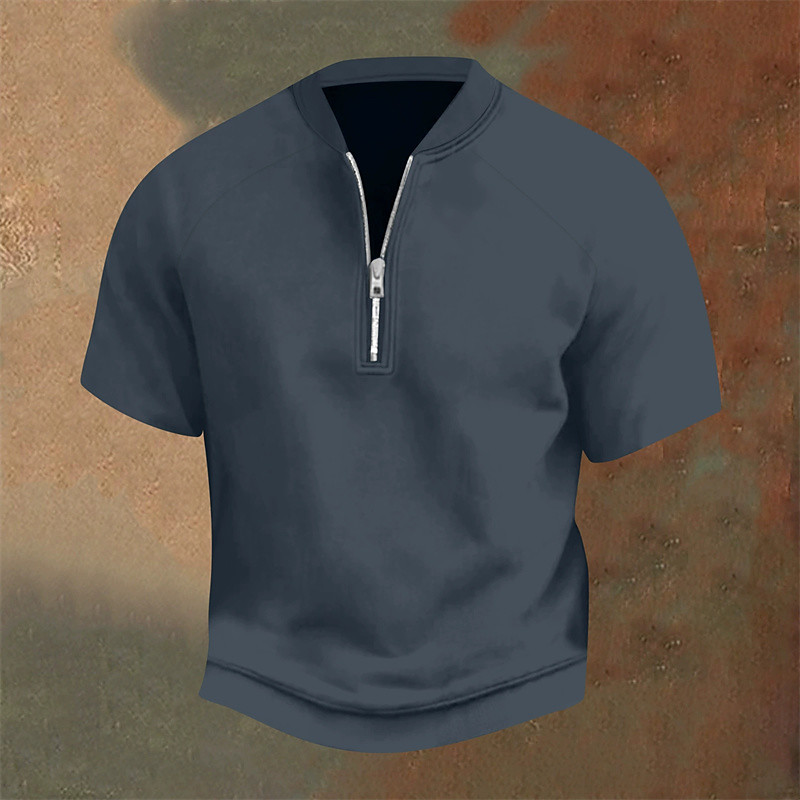 Men's Polo Shirts Quarter Zip Polo Daily Wear Date Quarter Zip Short Sleeve Fashion Basic Plain Jacquard Zipper Summer Regular Fit Black White Navy Blue Orange Light Grey Dark Gray Polo Shirts