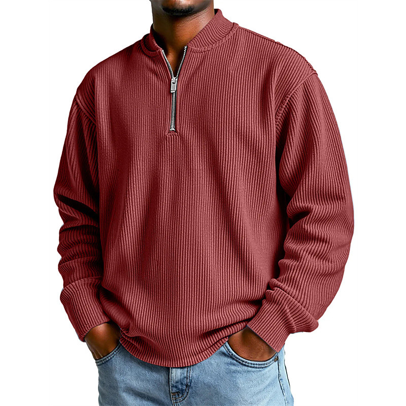Men's Polo Corduroy Shirt Vacation Street Quarter Zip Long Sleeve Fashion Basic Plain Spring Fall Tailored Fit Blue Wine White Light Purple Green khaki Polo