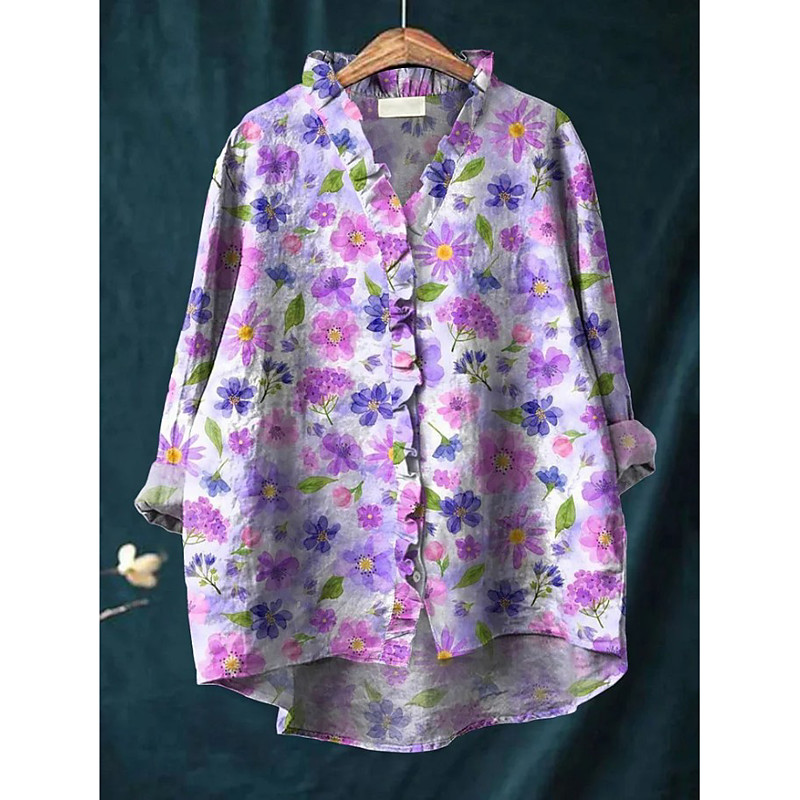 Women's Boho Shirt Floral Graphic Bohemia Vintage Stylish Long Sleeve Regular Tops Daily Holiday Ruffle Sage Green Pink Dusty Rose Purple Fuchsia Summer Spring Fall