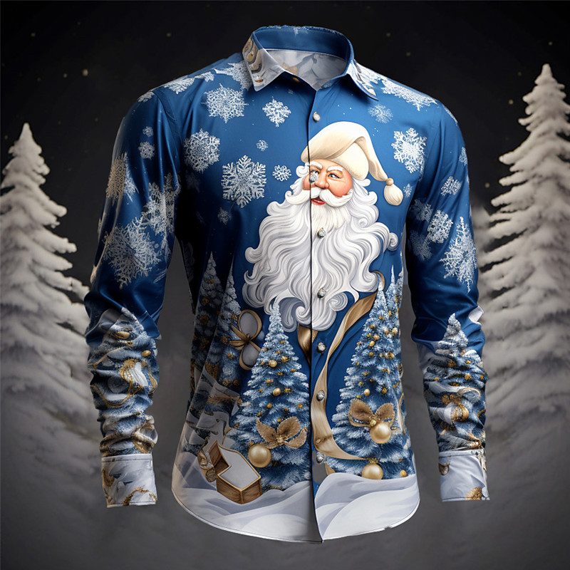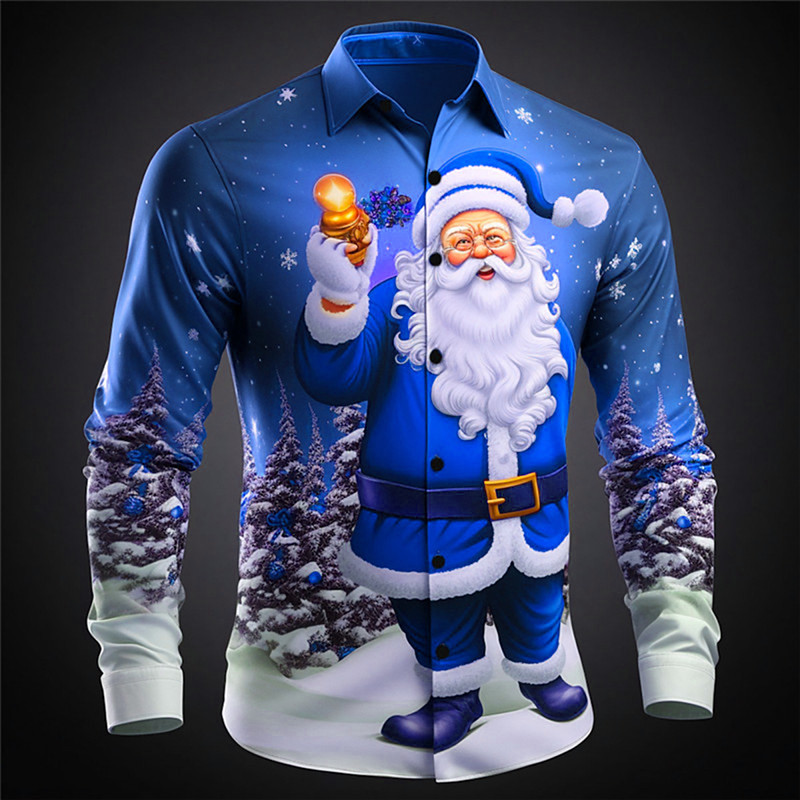 Christmas Men's Santa Claus Printed Shirts Santa Claus Casual Daily Wear Going out Fall Winter Turndown Long Sleeve White, Army Green, Red S, M, L 4-Way Stretch Fabric Shirt