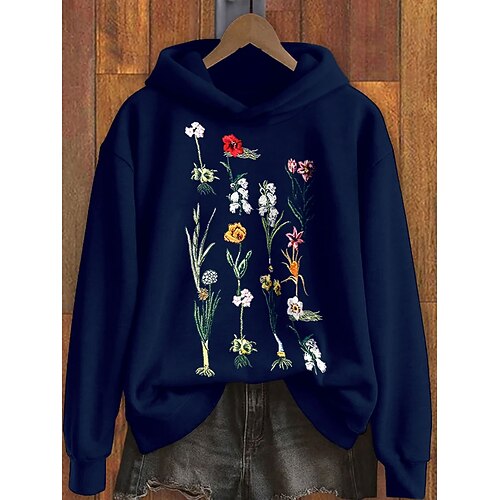 Per donna Felpa con cappuccio Floreale Grafico Casual Manica Lunga Con Cappuccio Top Regolari Abbigliamento da sera Streetwear Abbigliamento Quotidiano Nero Blu Verde Primavera Autunno Inverno
