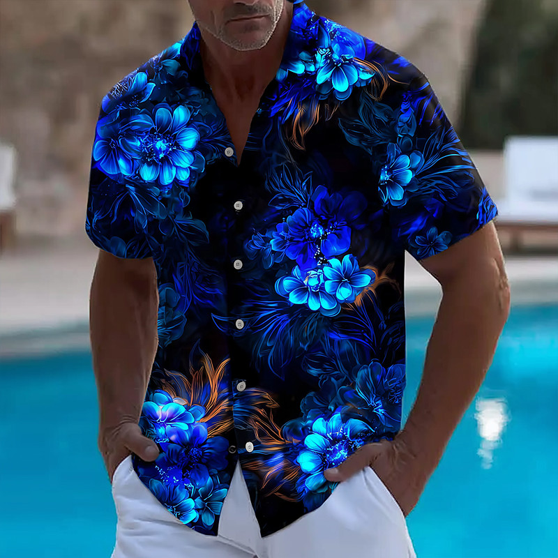 Men's Floral Print Neon Glow Flowers Summer Hawaiian Shirt Button Up Shirt Aloha Shirt Short Sleeve Hawaiian Vacation Beach Wear Summer Spring Turndown 3D Print Collared Shirts Black 1 Black