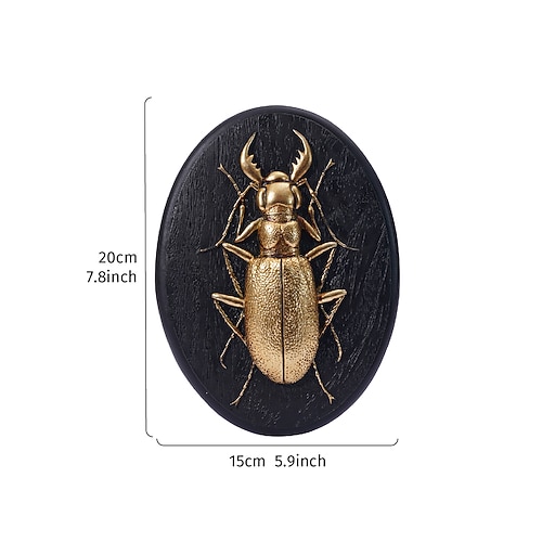 decorazione da parete a forma di scarabeo dorato, ornamento di insetto con cornice ovale nera, scultura in resina ABS fatta a mano, da collezione per gli appassionati di insetti, ideale per musei di