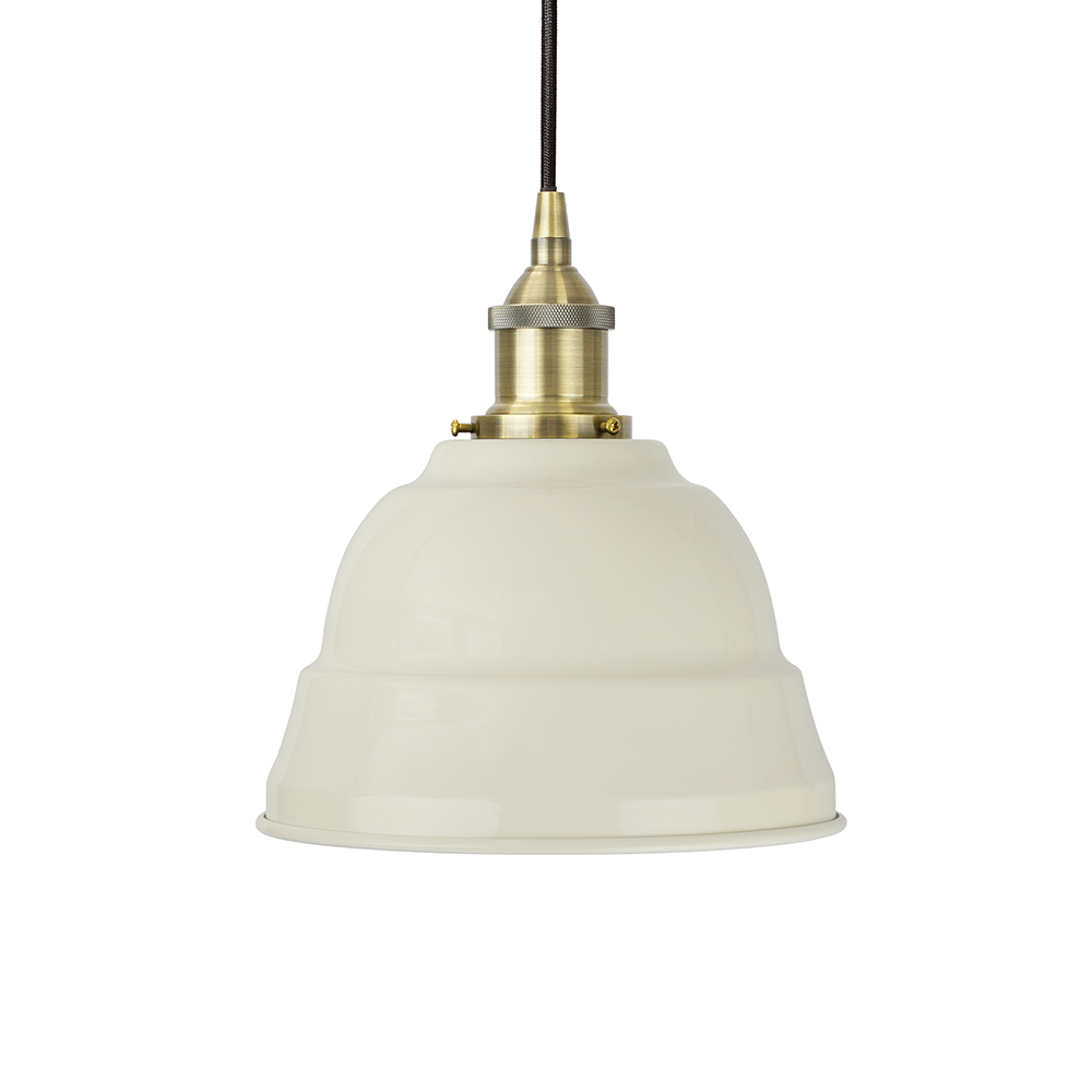 Soho Lighting Pale Grey St Edmund's Painted Pendant Light with Matt Antique Brass Lamp Holder and Black Twisted Cable