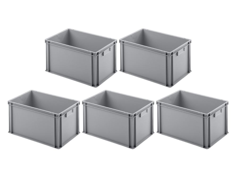 PROREGAL 5x Eurobehälter mit geschlossenem Griff | HxBxT 32x40x60cm | 56 Liter | Grau | Eurobox, Transportbox, Transportbehälter