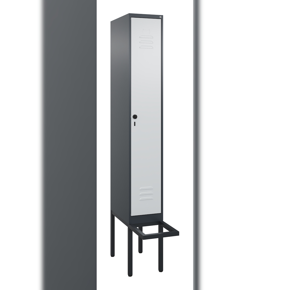 C+P Spind Classic PLUS, schwebender Sitzbank aus Buche 1 Abteil, HxBxT 212x30x82cm, Sicherheitsdrehriegel, Anthrazit/Hellgrau von PROREGAL
