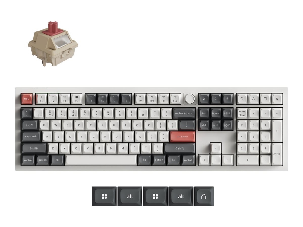 Keychron Q6 Ultra - Tastatur - 100% - full size - baggrundsbelysning - trådløs - Bluetooth 5.3, 2.4 GHz, USB-C - QWERTY - Nordisk - tastkontakt: Keychron Silk POM Red (Hot-swappable) - hvid