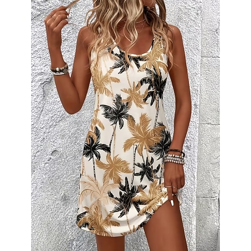 Per donna Mini Abito Vestito Casual Vestito Estivo Abito a Tubino Abito Estivo Vacanza Sexy Casual All'aperto Vacanza Quotidiano Vestibilità regolare Stampa Senza Maniche Scollo a V Spalline sottili