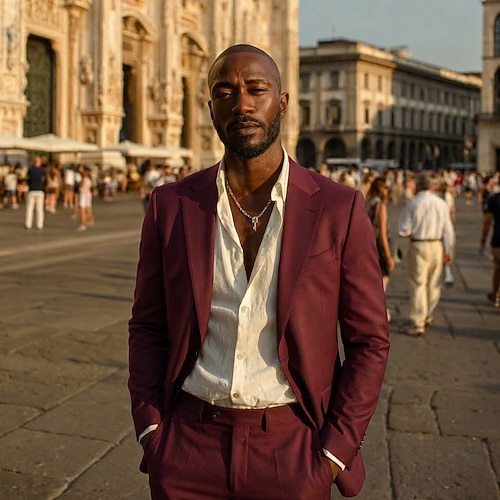 Uomo Abiti da lavoro Matrimonio primaverile Casuale Nero Borgogna Primavera, Autunno, Inverno, Estate Tuta Bavero classico Affari Formale Tinta unita Vestibilità su misura 2 pezzi Monopetto a un