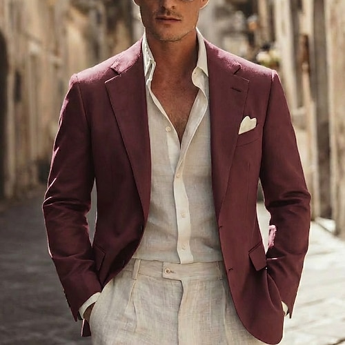 Per uomo Giacca blazer Colletto ad incastro Classico Casual Tinta unita Blazer Nero Borgogna Blu marino Vestibilità su misura Monopetto Due Bottoni