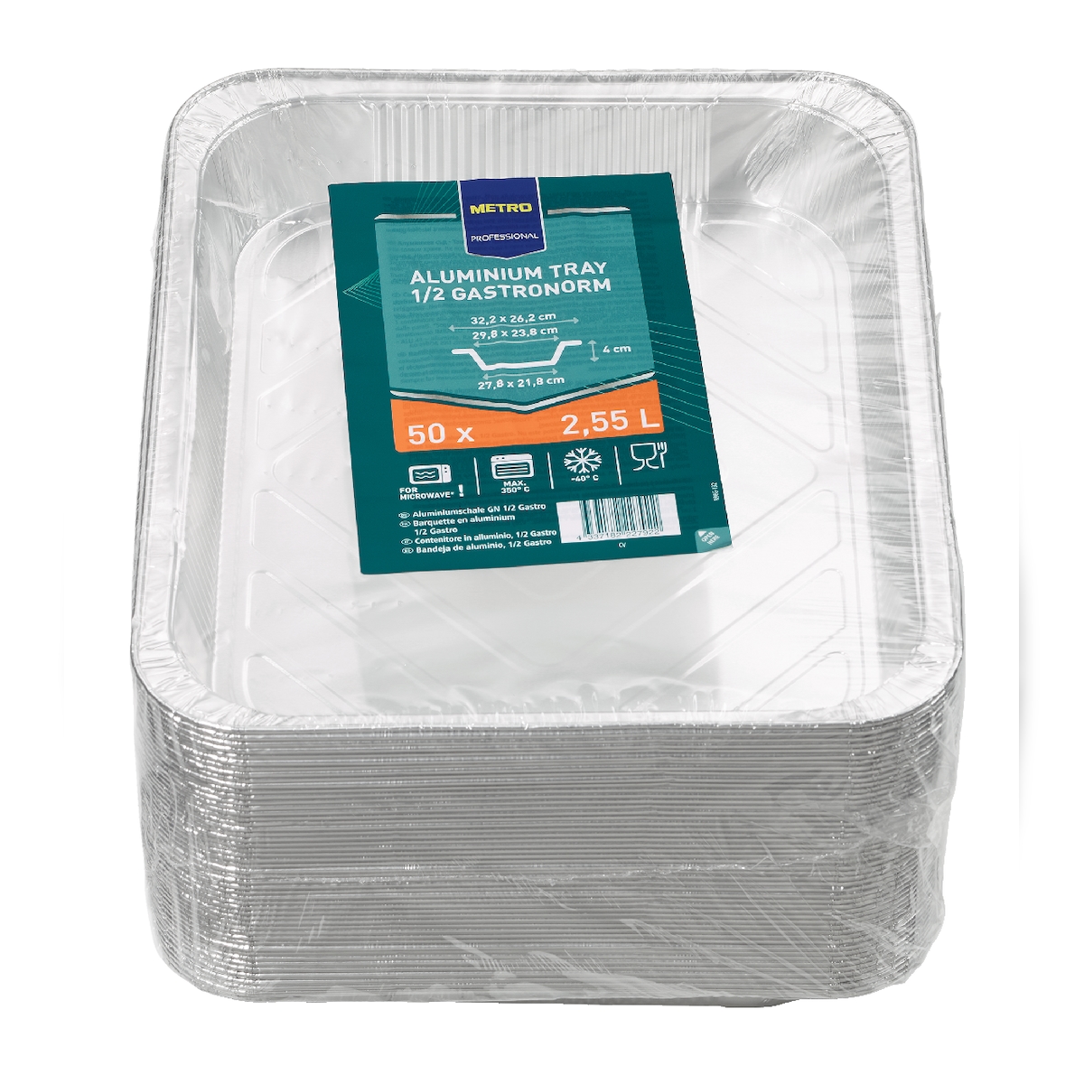 METRO PROFESSIONAL Aluschale mit Deckel, Aluminium, 2500 ml, silber, 50 Stück