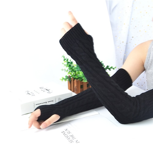 Lange Winter-Strickarmlinge für Damen, fingerlose Acrylhandschuhe, warme Strickmode ohne Finger für Herbst und Winter, lange Armwärmer