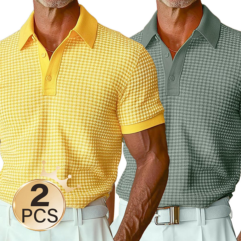Men's Waffle Polo Shirts Textured Vacation Casual Turndown Short Sleeve Vacation Leisure Plain Pocket 3D Print Summer Yellow white Yellow Red Yellow gray Yellow Brown Yellow green White
