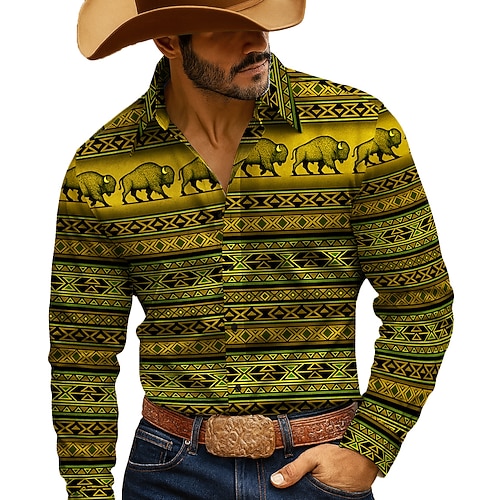 Per uomo Buffalo Plaid Cowboy Cultura indiana Camicia Camicia Western Camicia con Bottoni Manica Lunga Vintage Retrò All'aperto Casuale Abbigliamento da lavoro Primavera Autunno Collo ripiegato