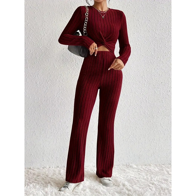 Women's Fashion Streetwear Pants Sets Bolero Top Long Sleeve Crew Neck Solid Color Outdoor Work Casual Wine Navy Blue Beige Fall Regular Fit