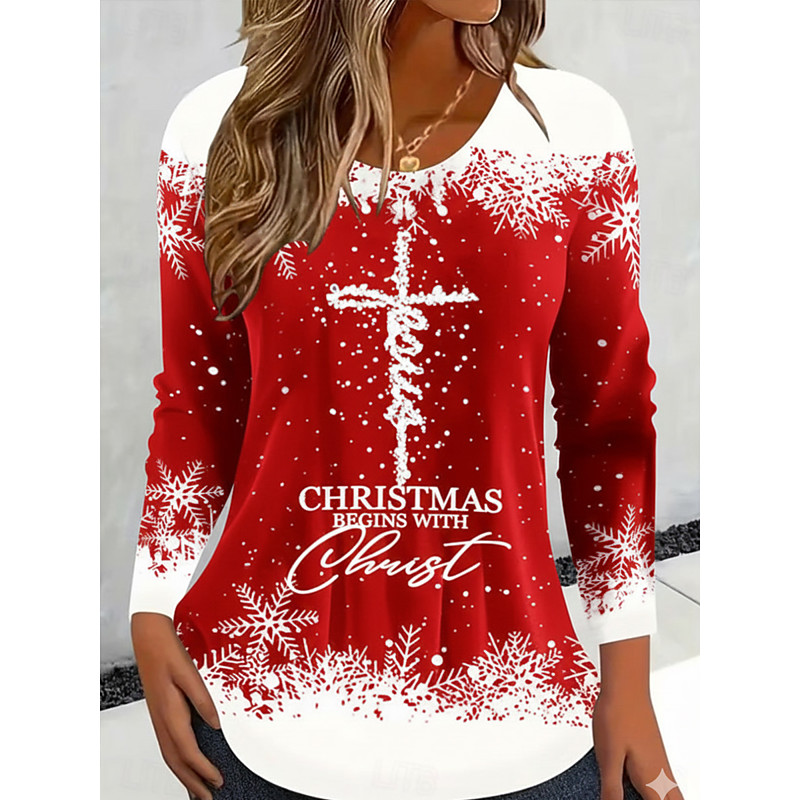 Christmas Women's T Shirt Graphic Vintage Fashion Stylish Long Sleeve Crew Neck Round Neck Regular Tops Daily Weekend Print Black Gold Summer Spring Fall Winter