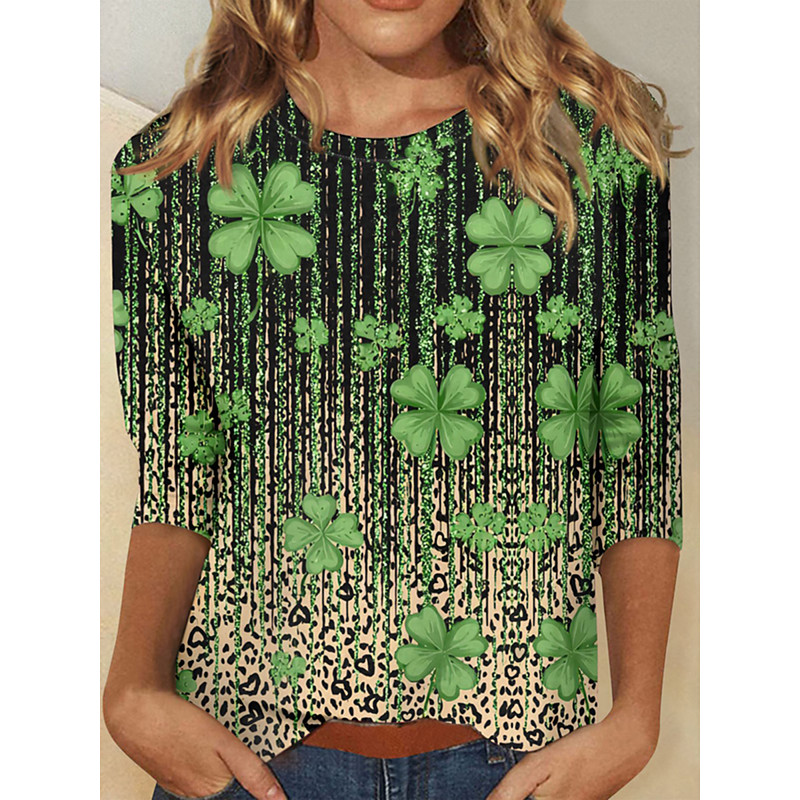 St. Patrick's Day Women's T Shirt Cartoon Shamrock Casual Long Sleeve Crew Neck Regular Tops Daily Print Green Spring Fall