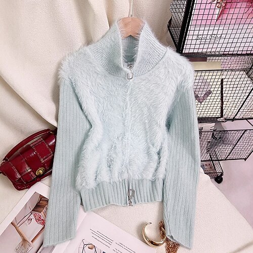 Per donna Felpa Cardigan Moda Streetwear Casual Tinta unica Aperto davanti Lavorato a maglia Manica Lunga Top Regolari Maglia Quotidiano Ferie Uscire Cachi Autunno Inverno