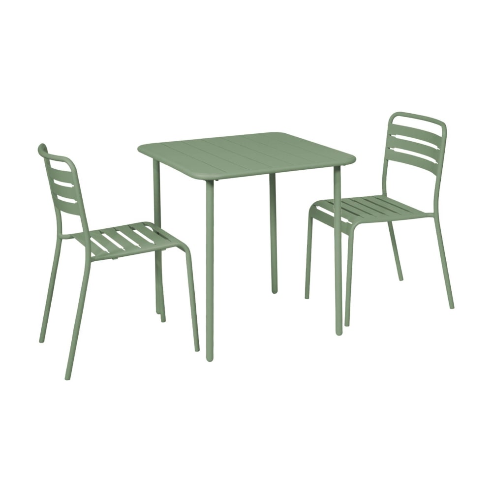 Set tavolo da giardino in metallo con 2 sedie, verde
