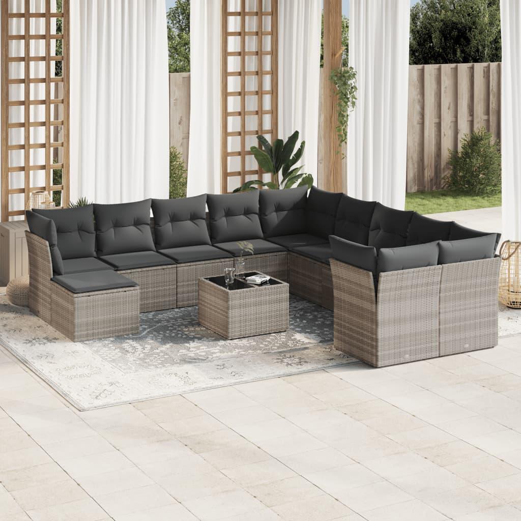 Sofasæt til haven 12 dele med hynder polyrattan lysegrå