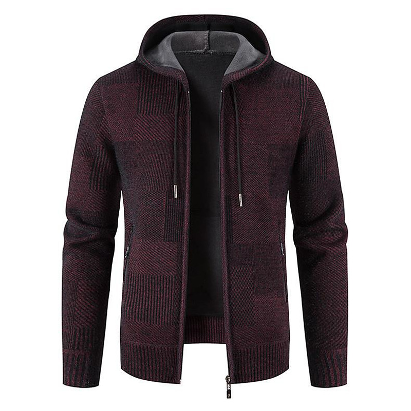 Men's Sweater Pullover Sweater Sweater Hoodie Zip Sweater Sweater Jacket Waffle Knit Cropped Knitted Solid Color Crew Neck Basic Stylish Outdoor Daily Clothing Apparel Winter Fall Wine Dark Gray M L