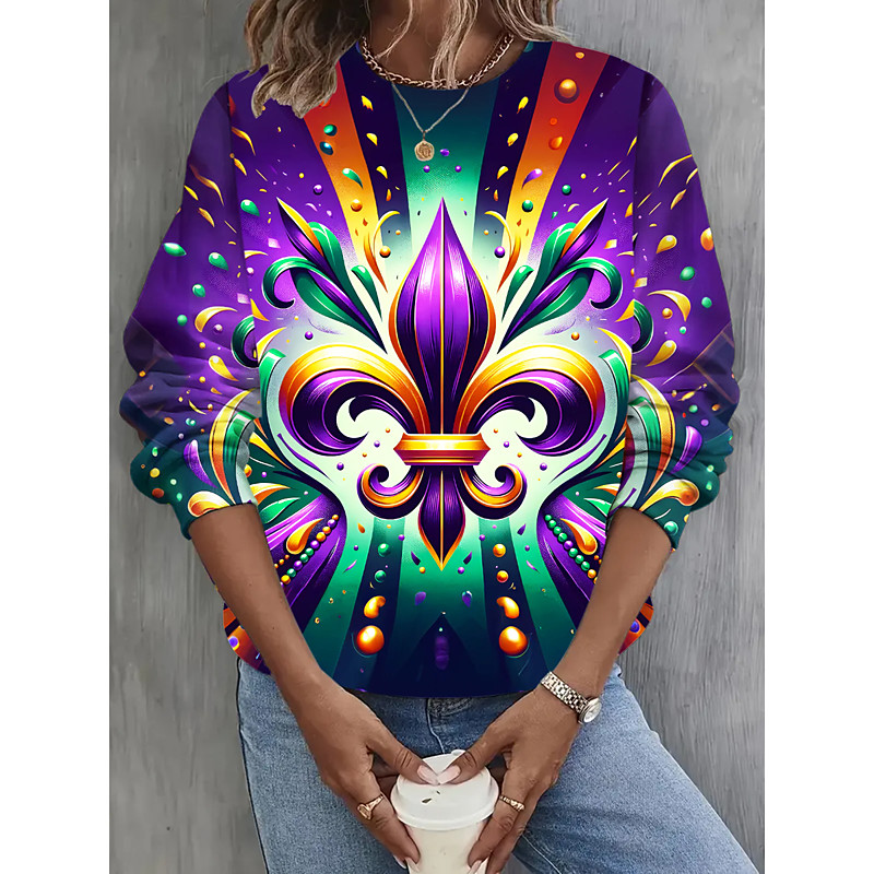 Women's Pullover Sweatshirt Hoodies Graphic Geometric Fashion Casual Long Sleeve Crew Neck Round Neck Regular Tops Street Dailywear Print Purple Fall Winter
