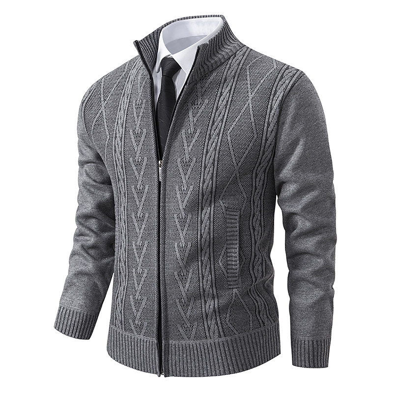 Men's Sweater Dress Sweater Cardigan Sweater Ribbed Knit Regular Tops Knitted Stand Collar Warm Ups Modern Contemporary Back to School Daily Wear Clothing Apparel Fall Winter Light Grey Dark Grey S