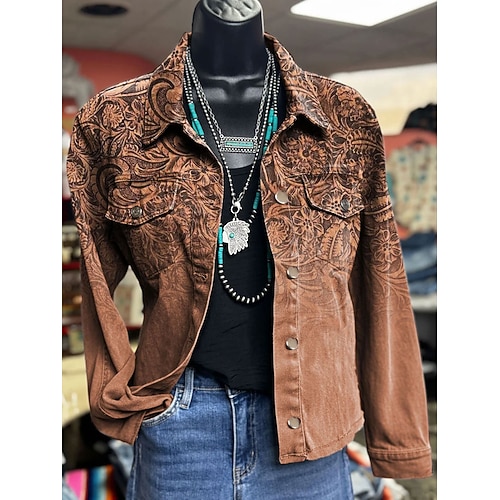 Damen Jacke Warm Bequem Knöpfe Druck Aktiv Vintage Künstlerisch Lässig Blumen Lässig Regulär Umlegekragen Normale Passform Langarm Oberbekleidung Blau Rote Khaki Herbst Winter