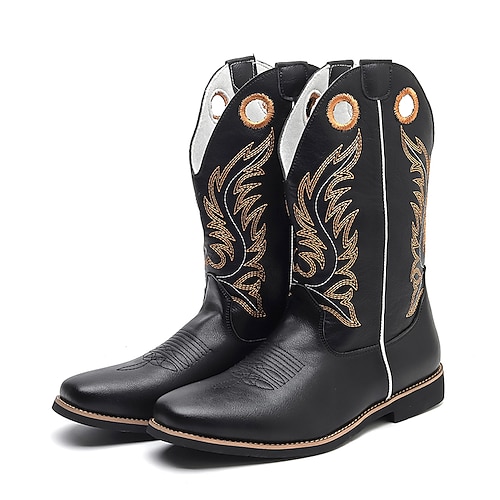 Per uomo Stivali Stivali da Cowboy Ricamo Retrò Camminata Vintage Casual All'aperto Quotidiano Pelle PU Confortevole Antiscivolo Caldo Stivali a Metà Polpaccio Slip-on Nero Marrone Primavera Autunno