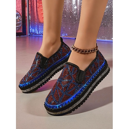 mocassini slip-on da donna con plateau e strass color oro nero, scarpe da festa con suola spessa e scintillante per la vita notturna abiti da club