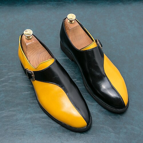 mocassini da uomo con cinturino monk giallo e nero, eleganti scarpe slip-on con fibbia regolabile, perfette per gli invitati a matrimoni, cerimonie formali ed eventi semi-formali