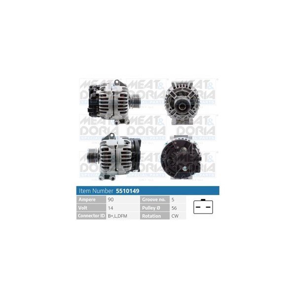 Laturi 14V 90A Meat & doria 5510149 - renault - OE 77 00 427 932, 77 00 434 899, 77 01 713 149