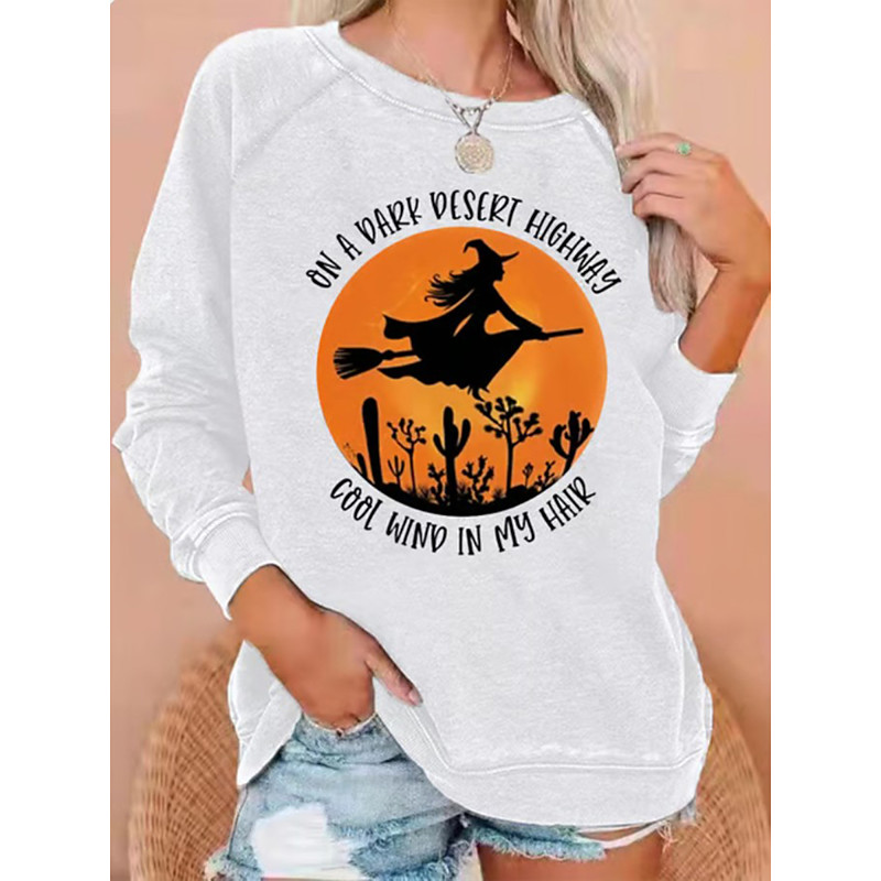 Women's Pullover Sweatshirt Witch Graphic Fashion Casual Long Sleeve Crew Neck Round Neck Regular Tops Casual Print White Light Green Wine Blue Light Grey Fall Winter