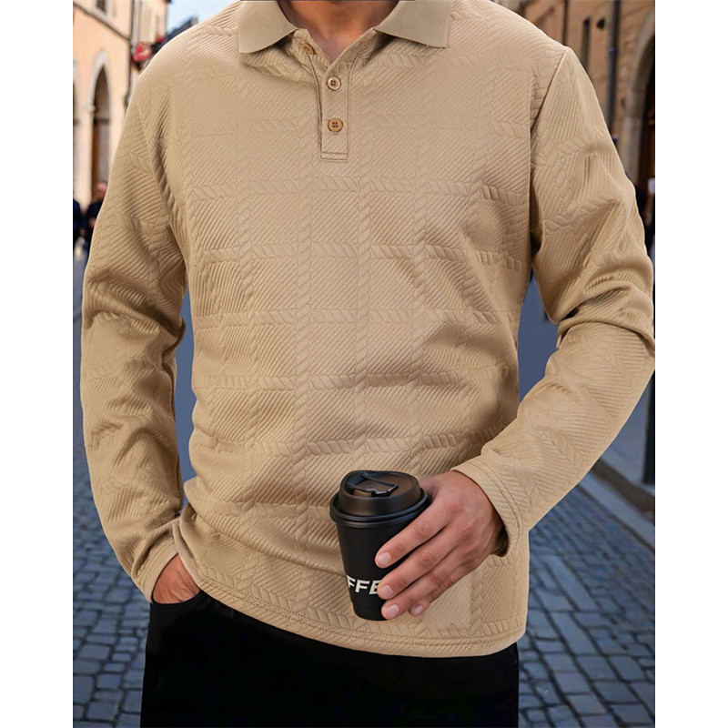 Men's Golf Shirt Golf Polos Shirts Work Casual Lapel Long Sleeve Basic Modern Plain Buttons Jacquard Spring Fall Regular Fit Black White Navy Blue Khaki Army Green Gray Golf Shirt