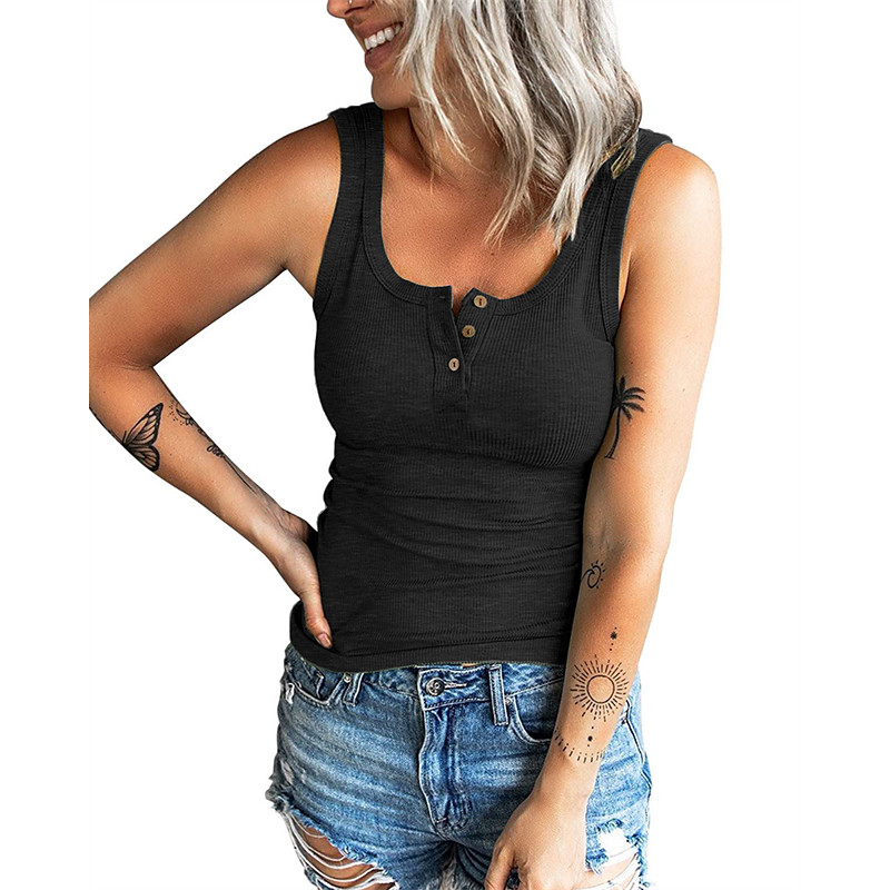 Women's Tight Tops Camisole Tank Top Solid Color Elegant Vintage Tropical Sleeveless Strap Scoop Neck Regular Tops Work Daily Going out Tunic Racerback Buttons Black Army Green Red Blue Brown Summer