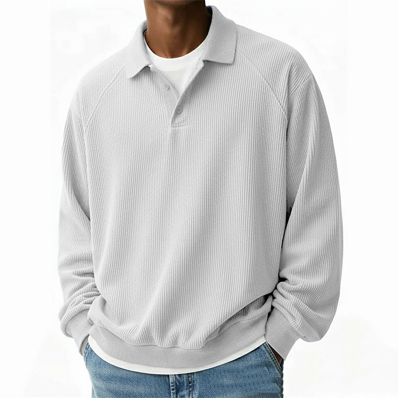 Men's Textured Muscle Shirt Formal Work Ribbed Polo Collar Long Sleeve Warm Basic Solid Color Buttons Spring Fall Slim Fit Black White Yellow Navy Blue Green Light Grey Textured