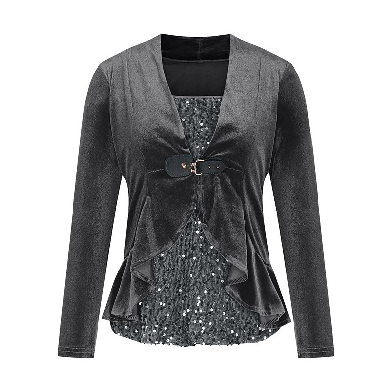 Women's Blouse Dressy Tops Plain Elegant Vintage Daily Long Sleeve Square Neck Regular Tops Work Daily Holiday Sequins Ruched Patchwork Black Green Gray Fall Winter