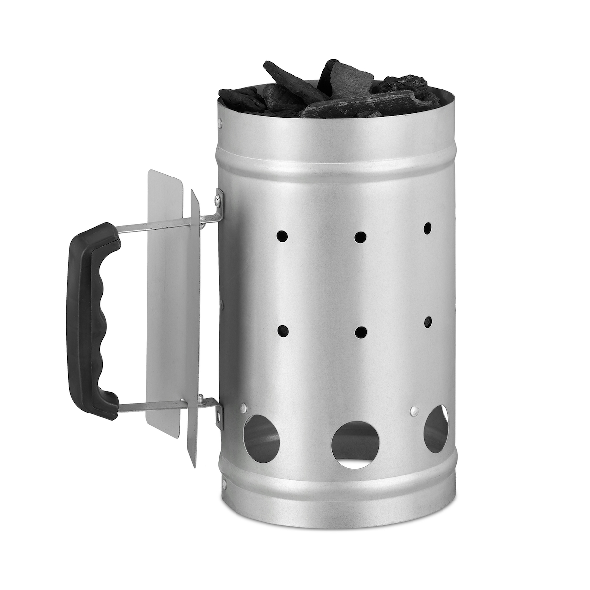 Relaxdays Anzündkamin, aus Stahl, Grillkohleanzünder für BBQ, Kamin, Grills, H x D: 27 x 16 cm, Grillstarter, silber