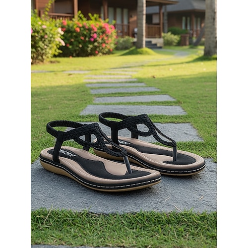 sandali infradito intrecciati blu navy da donna - comodi sandali bassi con cinturino e supporto plantare, eleganti scarpe estive bohémien per passeggiate in resort, vacanze tropicali giro turistico