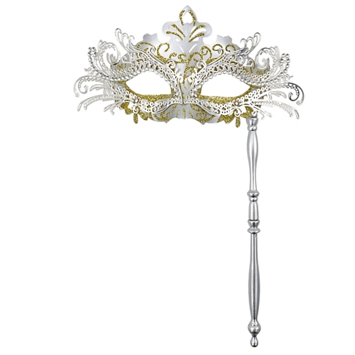 maschera da ballo da donna con strass e manico - elegante oro maschera rossa portatile per feste di Capodanno, balli eventi di danza formale