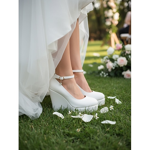 Per donna Quotidiano Cocktail Balli di fine anno Fibbia Plateau Punta Tonda Elegante Moda Carino PU Fibbia Bianco