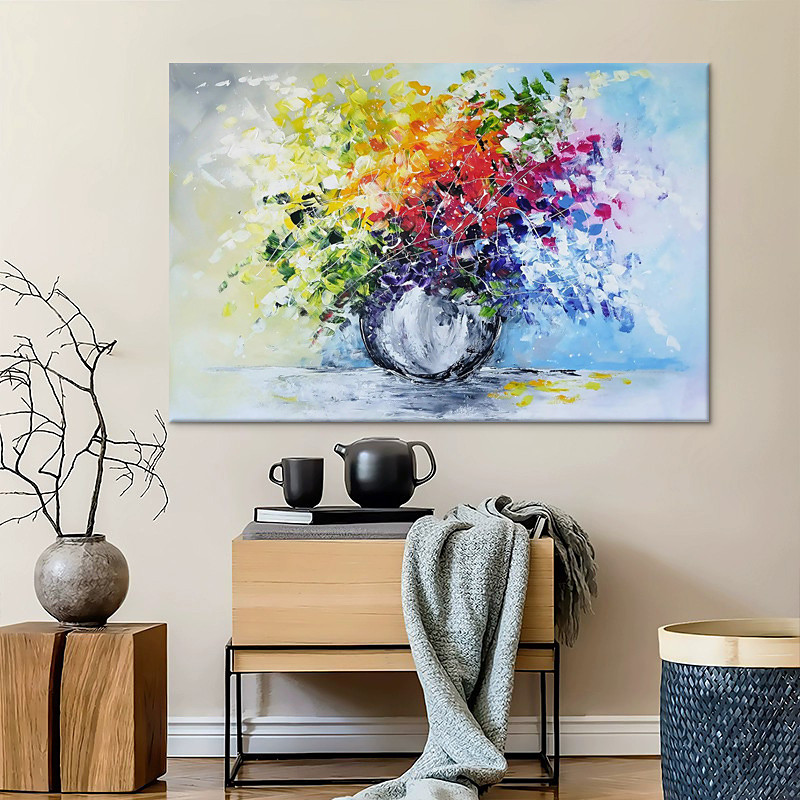 Handmade Oil Painting Canvas Wall Art Decoration Modern Palette Knife Abstract Floral Still Life for Home Decor Stretched Frame Hanging Painting / Rolled Canvas (No Frame)