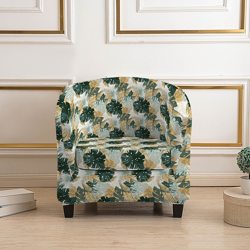 Club Chair Cover, Striped, Plants, or Geometric Printed Polyester Slipcover, Durable Non-Slip Chair Protector for Living Room